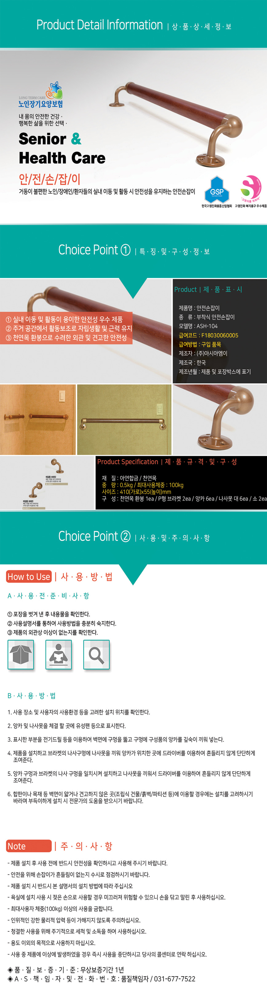 안전손잡이 41cm ASH-104