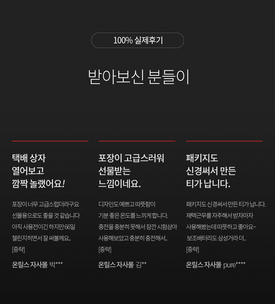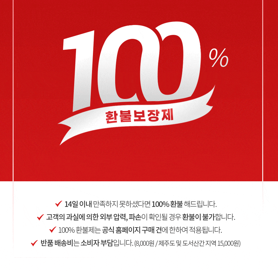 - 구매 후 한달 이후 A/S 발생 시에는 고객님께서 택배비를 부담하신 후 제품을 보내주셔야 합니다.