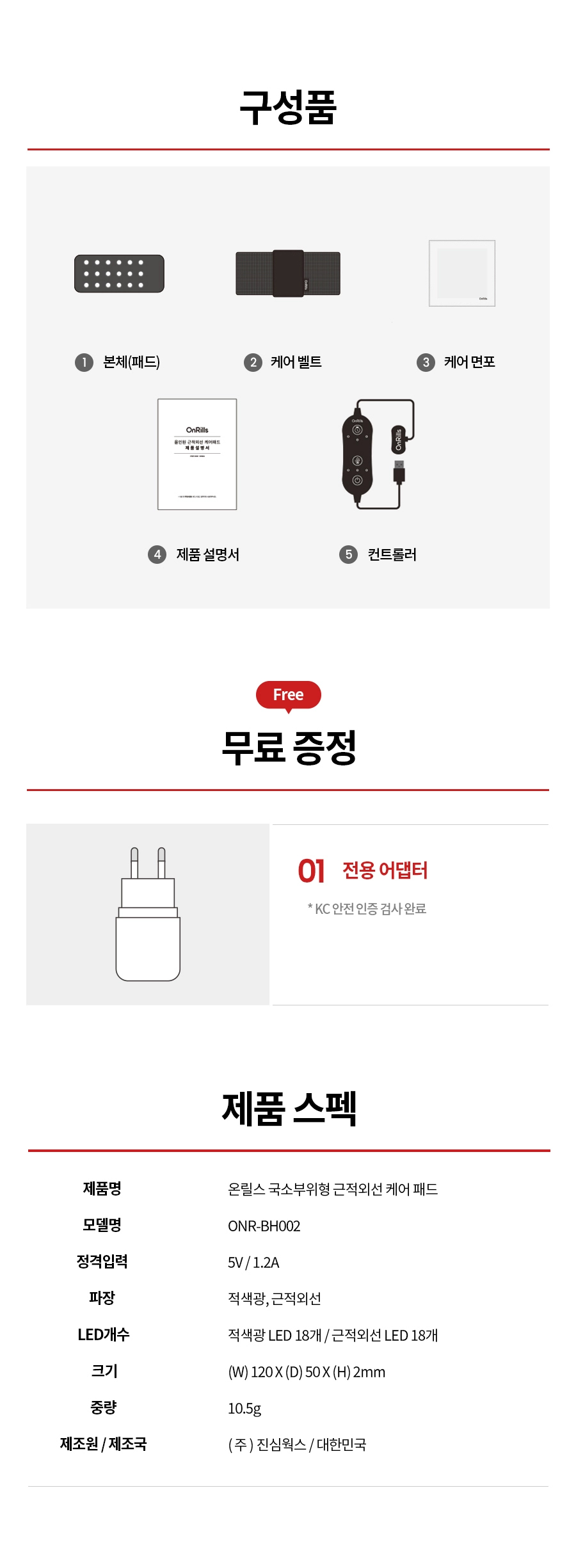 온릴스 LED 국소부위 근적외선 손목 발목 케어 패드 ONR-BH002