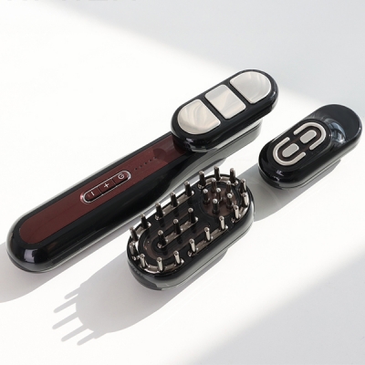 가벼운 빗질로 건강한 두피 케어, 피부 탄력, 모근 강화 EMS 저주파 진동, 헤어+얼굴+몸 3종 마사지 헤드로 스킨케어, 바디케어 가능, 내장 배터리 충전으로 무선 사용 가능